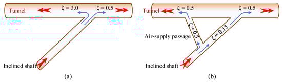 Due to the influence of the topography and geological conditions at the inclined shaft entrances, the angles at which the inclined shafts intersect with the main tunnel vary, resulting in significant differences in local resistance depending on the direction of airflow. Therefore, it is necessary to optimize the local resistance of the tunnel’s inclined shafts.