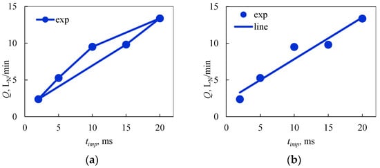 - Main research—a determination of the parameters of the rectilinear trend of the S-W method on the basis of Q obtained at different p and timp.