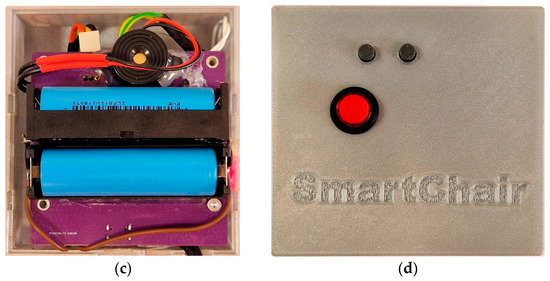 The proposed smart chair is powered by an autonomous power source; thus, two 18,650 lithium-ion batteries with a capacity of 2500 mAh were selected [