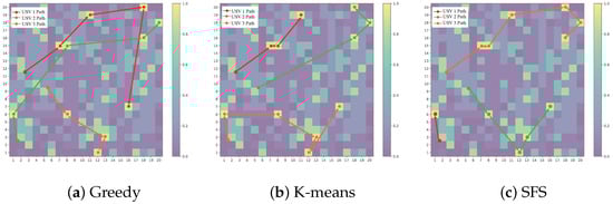 - Mondal, M.S.; Ramasamy, S.; Humann, J.D.; Reddinger, J.-P.F.; Dotterweich, J.M.; Childers, M.A.; Bhounsule, P. Optimizing fuel-constrained uav-ugv routes for large scale coverage: Bilevel planning in heterogeneous multi-agent systems. In Proceedings of the 2023 International Symposium on Multi-Robot and Multi-Agent Systems (MRS), Boston, MA, USA, 4–5 December 2023; pp. 114–120. [Google Scholar]