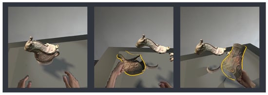 As shown in the figure, users can use natural grasping gestures to pick up different parts of the exhibit for closer inspection.