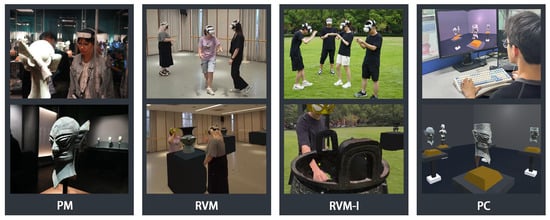 It is worth noting that the virtual environment in the PC mode was kept minimalistic—featuring only basic walls and a neutral floor—to maintain consistency with the physical environments used in the RVM condition, such as open grass fields or empty classrooms. This design choice aimed to ensure a fair comparison across different modalities by focusing participants’ attention on the exhibited artifacts rather than environmental details.