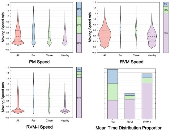 Visualized movement paths and speed distribution diagrams showed that participants in the RVM mode exhibited uniform movement speeds, consistent with behavior in real museums. In the RVM mode, participants circled the virtual artifacts during viewing, while in the PM mode, taller peaks in movement data were observed, largely due to crowding, representing waiting times and locations. The interactive features of RVM-I transformed the way participants engaged with artifacts. Without physical barriers like glass display cases, most participants reached out to touch the virtual artifacts. When able to freely handle the items, participants abandoned the traditional walking-around approach, instead opting to rotate and examine the objects by hand while maintaining a stationary posture. The increased peaks in RVM-I indicate that participants were closely examining artifact details.