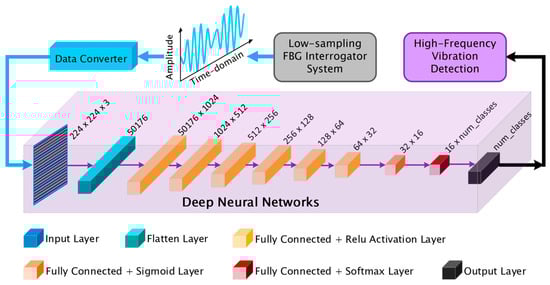 A bespoke DNN was meticulously architected to classify high-dimensional spectral representations and to infer latent harmonic structures embedded in undersampled temporal signals. Eschewing convolutional paradigms, the model adopts a fully connected architecture to exploit dense, layer-wise representations. The input comprises RGB images of dimension 224 × 224 × 3, which are reshaped into a unidimensional vector of 50,176 features via a Flatten operation. This transformation preserves all input variability while allowing for direct interaction between distal pixels—an essential feature for uncovering dispersed high-frequency components whose patterns may not be spatially localized.