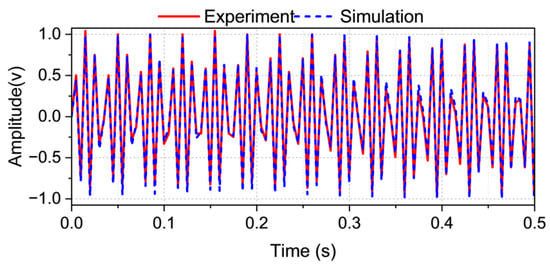 The comparison of the experiment and simulation waveforms at a frequency of 114.5 Hz.