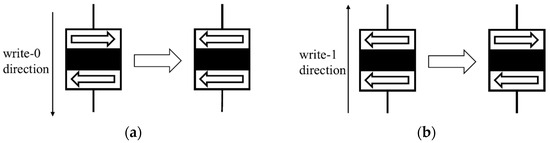 Writing process. (a) 1 to 0 switching. (b) 0 to 1 switching.