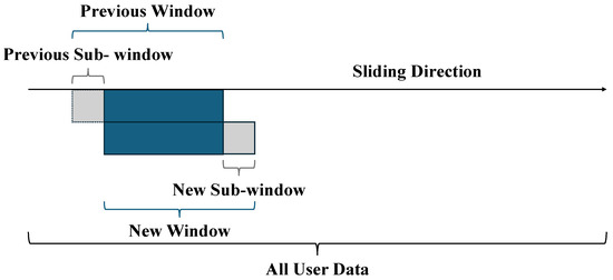 Illustration of the sliding window technique used to update the probability of 0 () during transmission in the proposed model.
