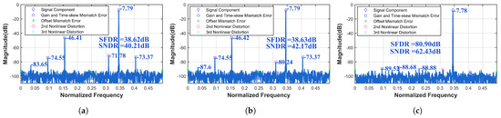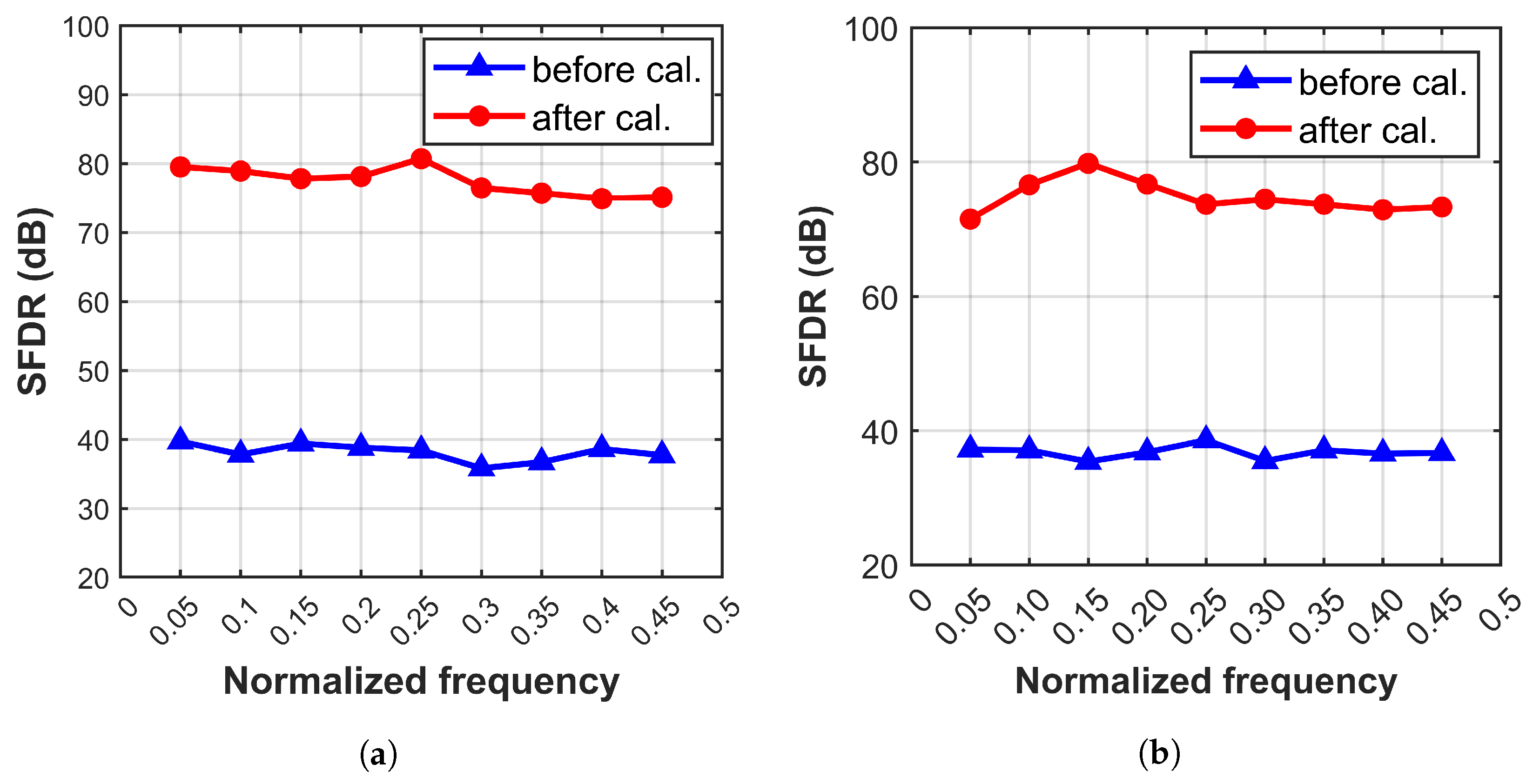 - Niu, H.; Yuan, J. A spectral-correlation-based blind calibration method for time-interleaved ADCs. IEEE Trans. Circuits Syst. I Regul. Pap. 2020, 67, 5007–5017. [Google Scholar] [CrossRef]