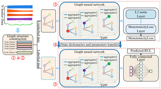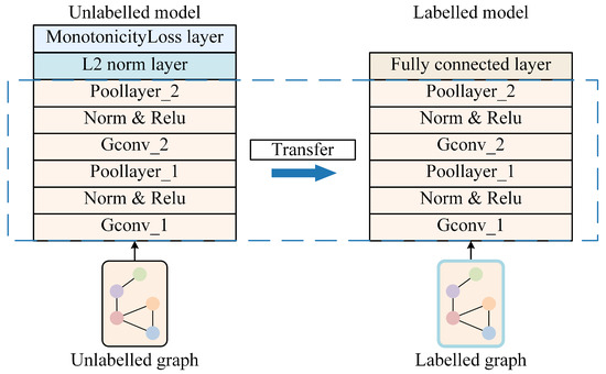 The GNN parts of both the ULDTM and LDTM are identical. The part of the GNN used in the ULDTM is followed by a monotonicity loss layer to evaluate the model’s capability to capture latent features throughout the cutting process, while the part of the GNN used in the LDTM is followed by a fully connected layer for tool RUL prediction. The comparison between the two models and transfer learning can be described as shown in Figure 6.
