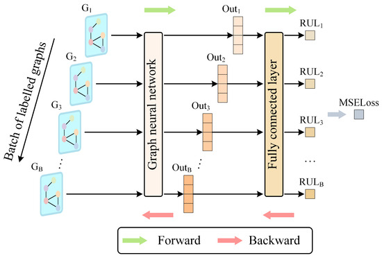 Labeled data is used for tool RUL prediction. The labeled dataset is divided into training and validation sets. Specifically, the labeled data is input into the GNN and processed to output vectors (the same as in the ULDTM). These output vectors then pass through a fully connected layer, resulting in a single value that represents the predicted RUL of the tool.