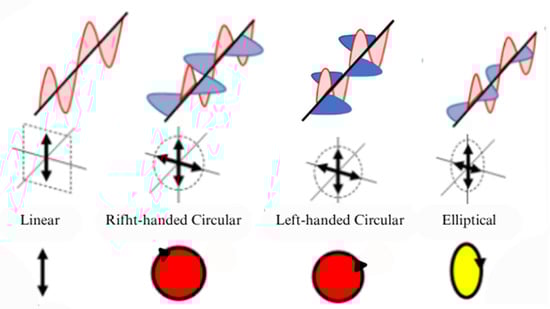 Various types of polarized light [17]. The arrow indicates the rotation direction of the electric field vector along the propagation path.