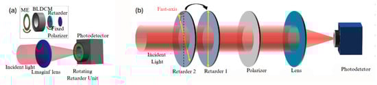 (a) The BLDCM that is designed by substituting the spinning polarizer with a rotating retarder [59]. (b) The dual-delay time-division polarimeter employed by JP Yang [48].
