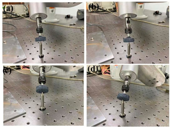 By operating the Epson C4-A601S robot through its controller, the tool end-effector was repeatedly positioned at the same target point in four distinct spatial orientations (as illustrated in