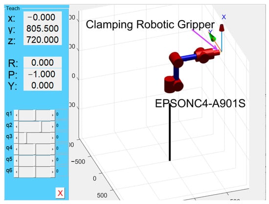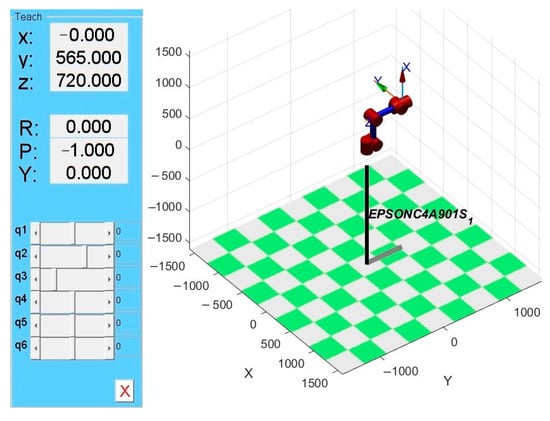 (4) Initial position adjustment and recording: Move the robot near the origin point, adjust the joints to align the tool coordinate system’s X and Z axes parallel to the corresponding axes of the base coordinate system, and then record the data parameters (for the 5th calibration point).