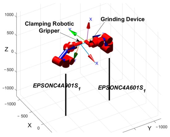 In this study, an EPSON C4 series robotic system is employed, where the EPSON C4-A601S—selected for its high joint motion velocity and positioning accuracy—is equipped with a grinding module to function as the grinding robot, while the EPSON C4-A901 serves as the workpiece-holding robot.
