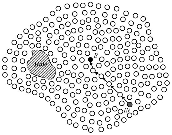 - Chen, D.; Varshney, P. A Survey of Void Handling Techniques for Geographic Routing in Wireless Networks. IEEE Commun. Tutor. 2007, 9, 50–67. [Google Scholar] [CrossRef]