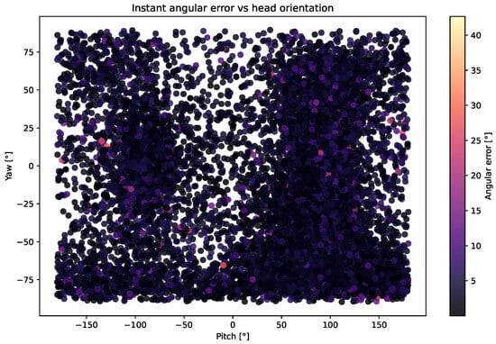 MAE distribution relative to head orientation evaluated on the MPIIFaceGaze test set.
