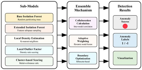 - ADEAD Ensemble Anomaly Detection Algorithm: An adaptive density-aware ensemble framework comprising five complementary sub-models: base isolation forest, extended isolation forest, local density estimation, local outlier factor, and cluster-based scoring. The algorithm enhances detection accuracy and robustness through dynamic inter-model collaboration and adaptive weight fusion strategies.