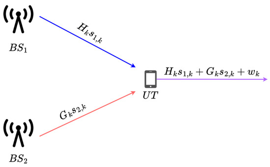 We denote the CFRs corresponding to each AP as H and G, respectively. The inverse fast Fourier transform (IFFT) is applied to obtain the corresponding channel impulse response (CIR), h, and g. The values of the CIRs are truncated to extract the most significant elements and limit the amount of noise, and the obtained elements are normalized. The channel responses are then applied to the respective transmitted symbols, and noise is added at various signal-to-noise ratio (SNR) levels. The pair of transmitted signals is then combined to obtain the received signal, whose expression is defined in Equation (6).