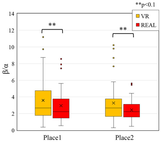 In this study, the beta/alpha (β/α) ratio was used as an indicator of arousal. A higher β/α ratio suggests a state dominated by beta waves, indicating increased attention, stress, and arousal. In contrast, a lower β/α ratio reflects a state in which alpha waves are more prominent, suggesting a relaxed or restful state with lower arousal.