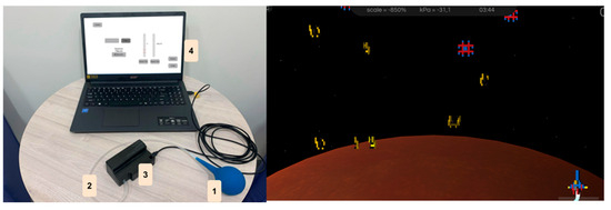 Protocol P—Passive task (passive observation)—the participant was asked to rhythmically squeeze a pressure controller (approximately every 2 s) while observing a computer screen displaying an image of an aeroplane moving in space—the “Space Invaders” game (without affecting the controls). The goal was to maintain relatively uniform ball compressions without reacting to changes on the screen.