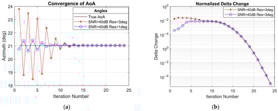 - Off-Grid Angular Refinement via VB-OG-SBL: To address the off-grid angular problem, a VBEM-based OG-SBL framework is developed. It jointly refines azimuth and elevation offsets through second-order Newton-style updates within VBEM iterations, enabling stable and high-resolution continuous domain estimation.