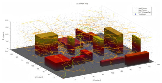 - Chen, J.; Yu, J. An improved path planning algorithm for UAV based on RRT. In Proceedings of the 2021 IEEE 4th International Conference on Advanced Electronic Materials, Computers and Software Engineering (AEMCSE), Changsha, China, 26–28 March 2021; pp. 895–898. [Google Scholar]