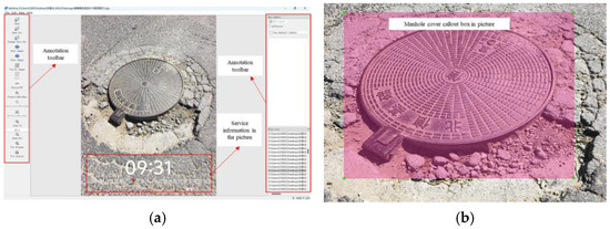 Image annotation: (a) Labeling software interface. (b) Annotation results.