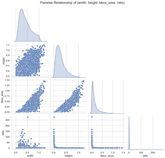 Multivariate analysis (Figure 10) reveals complex relationships among the geometric characteristics of the targets. Width and height exhibit a positive correlation but include shape outliers, while area increases linearly with size. The dispersed distribution of aspect ratios, particularly the significant variations in the “loss” category, highlights the inherent differences in morphological features among different defect types. These findings suggest that model optimization should focus on enhancing multi-scale feature pyramids and attention mechanisms to improve small-target detection and shape adaptability. Additionally, data augmentation and resampling strategies should be employed to balance class distribution, and a learning framework that integrates spatial information and morphological features should be constructed to address the core challenges of large-scale variations, significant shape diversity, and sample imbalance in manhole cover defect detection.