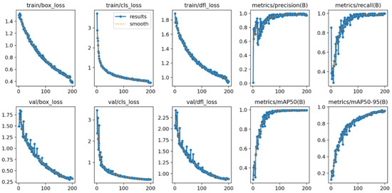 In terms of optimizer selection, the AdamW optimizer was employed, which combines weight decay strategies to enhance the model’s generalization capability. The initial learning rate was set to 0.001, and a cosine annealing learning rate schedule was adopted to ensure stable training. Each training iteration was performed with a batch size of 64, with a maximum of 200 training epochs. The input image size was set to 512 × 512 to balance the precision of feature extraction and computational efficiency.