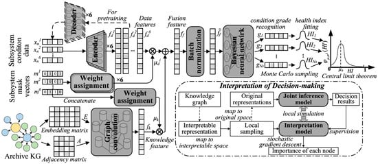 Further, heterogeneous data from PMUs and AMI devices employed in sensors has become prevalent in modern DNs []. In light of existing deficiencies in real-time monitoring and feedback capabilities, which hinder timely quantitative MSH assessment of potential early environmental risks, Sun et al. [] summarized 10 environmental risks and classified them as related to the DN. They divided the monitoring samples into three dimensions and employed knowledge graphs to construct a potential external risk framework for generating dynamic visualizations. Recently, Tian et al. [] optimized the interpretable joint reasoning approach by MSH subsystem measurement to address the manual summarization of rules, strong data dependency, lack of measurement analysis, rough information fusion, or inability to interpret evaluation results in previous approaches. A locally interpretable approach as illustrated in Figure 6 was designed to automatically extract MSH knowledge and data features through sparse autoencoders and a graph CNN, which reduced errors by considering extreme conditions. The expected status monitoring and data assessment will present the results of data monitoring, processing, and fusion in the form of state perception and full scenario evaluation, which also provide comprehensive visual information on key indicators. Combined with data analysis and extreme condition assessment, this will provide timely disaster warning information and optimize the operational efficiency of the power system as a scientific basis for decision-making.