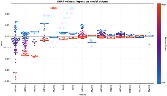 Communication within the system is structured across two network layers, with wired links facilitating data transmission and collection. The datasets include readings from 51 sensors and actuators, such as flow meters, water level indicators, motorized valves, pumps, and pressure sensors, sampled at one second intervals. As one of the most comprehensive CPS datasets available, the SWaT dataset has been widely adopted in academic research on anomaly detection and system monitoring [37,38,39]. The SWaT.A1 dataset, recorded in 2015, captures 11 days of system operation: 7 days under normal conditions and 4 days during which 41 distinct cyber-physical attacks were conducted, resulting in a total of 449,920 data records. In contrast, the SWaT.A6 dataset, recorded in 2019, offers a shorter 4 h session comprising 13,202 data points, with the first 3 h representing normal operation and the final hour, including 6 unique attack scenarios.