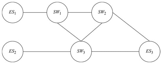 The network topology depicted comprises three end devices (ESi) and three TSN switches (SWi). As illustrated in Figure 2, the TSN switches (SWi) are interconnected via physical links. An ESi can serve as either the source or the destination of traffic, while SWi facilitates data forwarding. The network architecture is assumed as a directed graph G = {V, E}, where V represents the set of all nodes, and E represents the set of transmission links on the network, as shown in Figure 2.