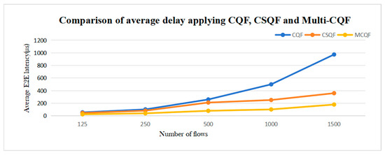 Comparison of average delay applying CQF, CSQF, and Multi-CQF.