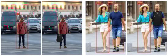 During the inference attacking stage, we evaluate the performance of the backdoored detection model on a testing dataset. A subset D t e is randomly selected from the pedestrian dataset D as the testing dataset, which consists of both poisoned samples containing our occlusion-based trigger and benign samples. The testing results demonstrate that the backdoored model exhibits dual behavioral characteristics. When processing benign data, the model performs normally, maintaining its pedestrian detection capability. However, when encountering malicious samples containing our occlusion-based trigger, the model activates its backdoor behavior and fails to detect the target pedestrian. This characteristic stems from the strong association established during the training phase: when detecting a specific occlusion pattern in the input data, the model executes the predefined backdoor response. In real-world scenarios, this inference attack is highly dangerous. Attackers can carry items that produce such occlusion effects to trigger the model’s backdoor and evade the pedestrian detection system, rendering themselves undetectable by the detector.
