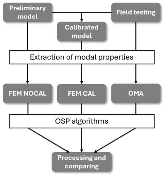 These three datasets (FEM NOCAL, FEM CAL, and OMA) are subsequently used as input to the sensor placement process. For each of them, the same set of OSP algorithms is implemented, enabling a consistent comparative analysis of how the source of information affects the resulting sensor configurations.