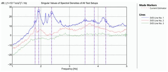 28], this technique offers several notable advantages. Based solely on experimental data, it captures the real dynamic behaviour of the structure under actual operating conditions. This ensures that optimisation results are directly applicable to the current state of the building, avoiding the modelling uncertainties associated with assumptions on materials or boundary conditions. Additionally, the method relies on real sensor locations that have already been tested during the data acquisition process, ensuring the feasibility of these points and allowing the optimisation to account for practical considerations such as accessibility and sensor installation constraints.