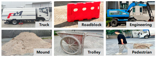 Construction machinery and trucks belong to large moving targets, taking into account the excavator’s own maximum digging radius, the two warning safety distance and braking safety distance are set to 9 m and 6 m, respectively The staff belong to small targets and the activity is larger, taking into account the redundancy of pedestrian safety, so the warning safety distance and the braking safety distance are set to 9 m and 4 m, respectively. The soil pile is an operational target, so only the warning safety distance is set to 6 m. The dump truck and the roadblock belong to medium-sized targets and are generally stationary, so the warning safety distance and the braking safety distance of the two are set to 6 m and 4 m, respectively.