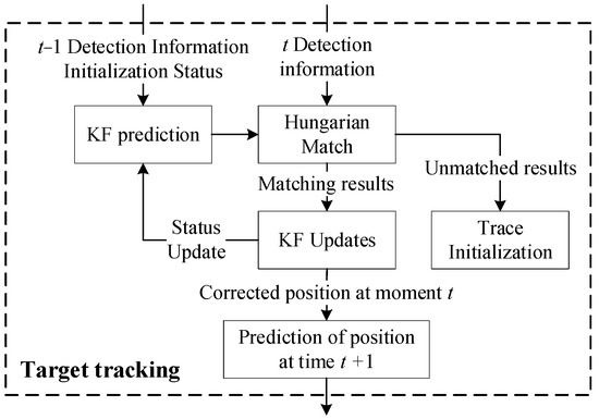 Detection-based tracking paradigm is still the dominant method in the field of autonomous driving, which is able to realize multi-target tracking well compared to point-based tracking and twin-frame-based tracking approaches without cumulative error, where detection and matching are being recalculated in every frame. The detection-based tracking paradigm is divided into three parts. including motion prediction, data association, and trajectory cycle management. Figure 11 shows the flow schematic of the tracking module in the sensing system of this paper.