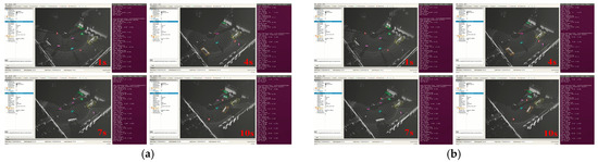 As shown in Figure 15, traveling at two speeds for 10 s respectively, the point cloud frames at 1 s, 4 s, 7 s, and 10 s are selected to show the real vehicle detection results, and 20 frames of point cloud statistics of 10 s consecutive frames are extracted to show the real vehicle detection effect, as shown in Table 8.
