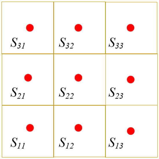 If a pixel is covered by at least one neighboring node, the value in its corresponding CONO column is set to 1. The number of rows in each information table is consistent, while the number of columns varies depending on the number of nodes within each unit. Initially, all entries in the information table are set to 0. When a pixel is covered by a node, the table entry corresponding to that pixel is updated to 1. Table 1 shows a complete example of an information table for unit A11, according to Figure 7.
