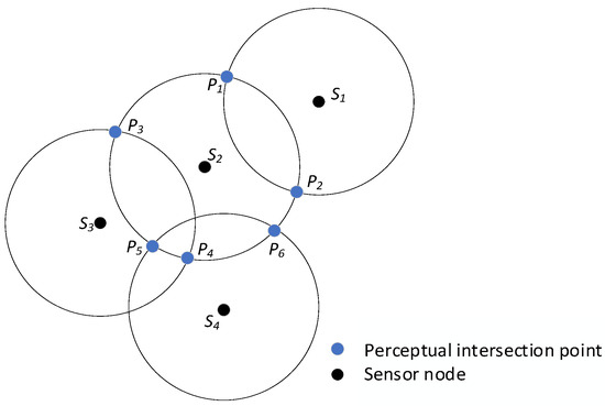 With this method, the key perceptual intersections of all nodes in the unit are derived. After that, the key perception intersection of all nodes in the unit is derived, but the exact location coordinates of all KIPs need to be known. The key perceived intersections P1, P2 of node Si with its neighbor node Sj are calculated as follows: