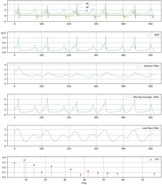 3.2. Feature Extraction Using FFT, Kalman, Low Pass, and Moving Average Filters