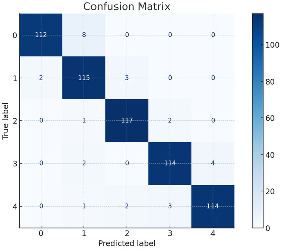where is True Positive, is False Positive, and is False Negative. Based on the results summarized in Figure 8, the calculated F1 score reaches 0.972, indicating a high level of balance between precision and recall in the model’s performance.