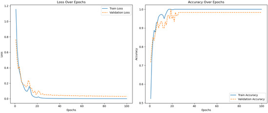 Table 6 presents a comparison between previous studies and the experimental results of this study. Ng [8] proposed a machine learning-based approach to classify normal and abnormal road surface conditions. By applying a Support Vector Machine to five surface types, they achieved a maximum recognition accuracy of 87%. Subsequently, Ng [9] adopted a deep learning-based approach using LSTM, which resulted in an improved accuracy of 88% for the same classification task. Meanwhile, Miyata [32] and Kobayashi [33] combined time-domain and frequency-domain features, achieving recognition accuracies of 85% and 71.44%, respectively. In comparison, the method proposed in this study achieved a recognition accuracy of 95.17% across five surface types, demonstrating superior performance over the existing approaches.