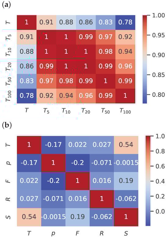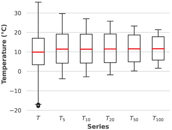 Table 4 lists the variables contained in the input dataset. The variables were recorded at 10 min intervals and specifically describe wind speed (F), atmospheric pressure (p), solar irradiance (S), precipitation (R), ambient temperature (T), and soil temperature () at depths of 5 cm, 10 cm, 20 cm, 50 cm, and 100 cm. Because temperature in soil changes slowly and inertially and does not experience the same rapid changes as ambient heat, wind or solar irradiance, the dataset was resampled to a one-hour interval using an averaging window function.