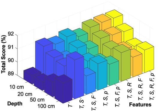 Comparison of feature sets according to the total score obtained for 100 cm soil depth.