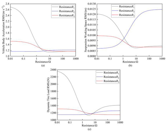 3.3. Influence of Electrical Resistances on Suspension’s Dynamic Performance
