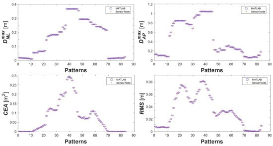 First, a comparison between the features generated by the sensing node and the features calculated in MATLAB® was conducted. The result of this test is shown in Figure 6, which demonstrates suitable matching between the two sets of estimations.