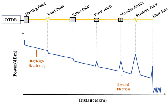 Optical fiber cables, serving as a critical medium for information transmission, have been pervasively integrated into diverse societal domains. With the comprehensive deployment of new infrastructure initiatives—including 5G networks, data centers, the Industrial Internet, the Internet of Things, and artificial intelligence—the demand for real-time condition monitoring and performance evaluation of optical fiber cables has become increasingly pivotal [1]. Optical Time-Domain Reflectometry (OTDR), as a tool for diagnosing fiber faults, with the advantages of simple operation, rapid response, and low cost [2,3,4,5], has received extensive attention and favor from researchers and various manufacturers.